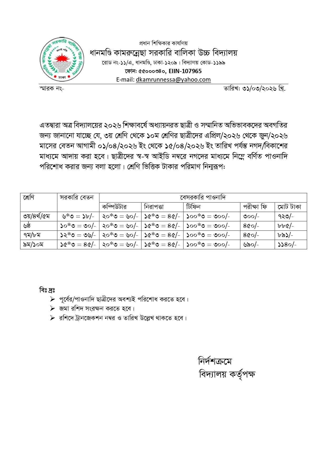 ২০২৬ সালের এপ্রিল-জুন-২৬ বেতন পরিশোধ করতে বলা হলো, বেতনের বিস্তারিত দেয়া হলো।